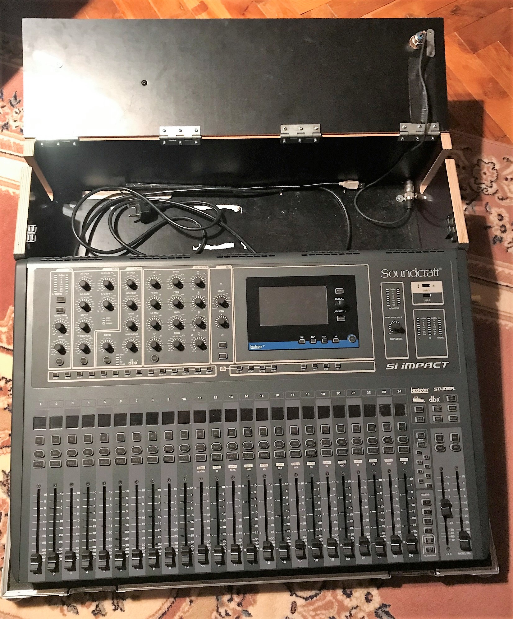 Prodám Soundcraft Si Impact. Cca rok pravidelně používaný, poté jako záložní (cca 4 akce do roka). Vše funkční, používán s nastálo zapojeným rozpletem s Hartingem. K pultu na míru vyrobený case od firmy CASE-RACKY.cz