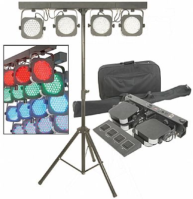 Prodám LED sestavy, 2 ks, QTX Light PB-1, vč. přepravích kufrů, nožního ovladače, 4x 145 RGB LED ( 49 red, 48 green, 48 blue ), LED prům. 10mm. Na prodej bez stojanů, lze nasadit na kterýkoliv repro stativ.
