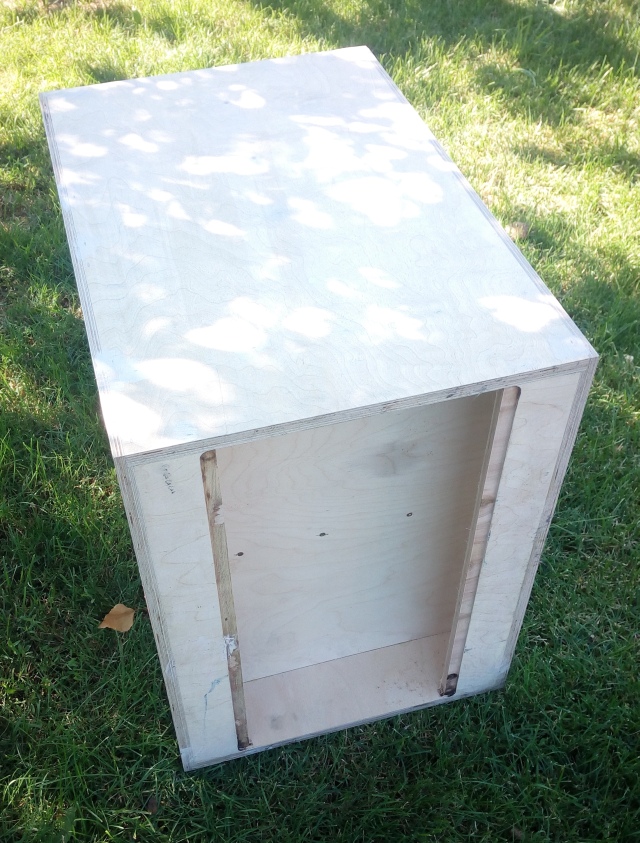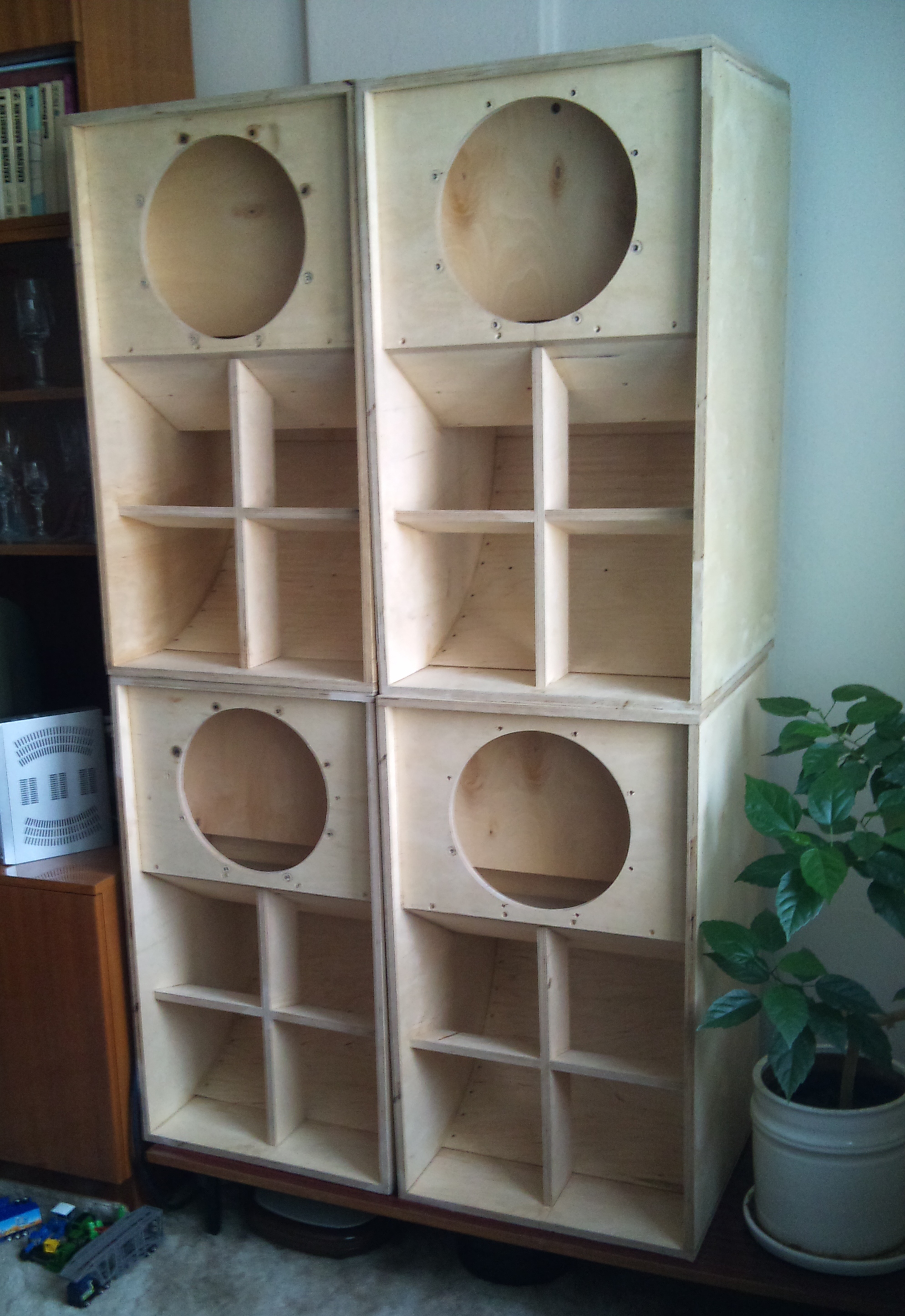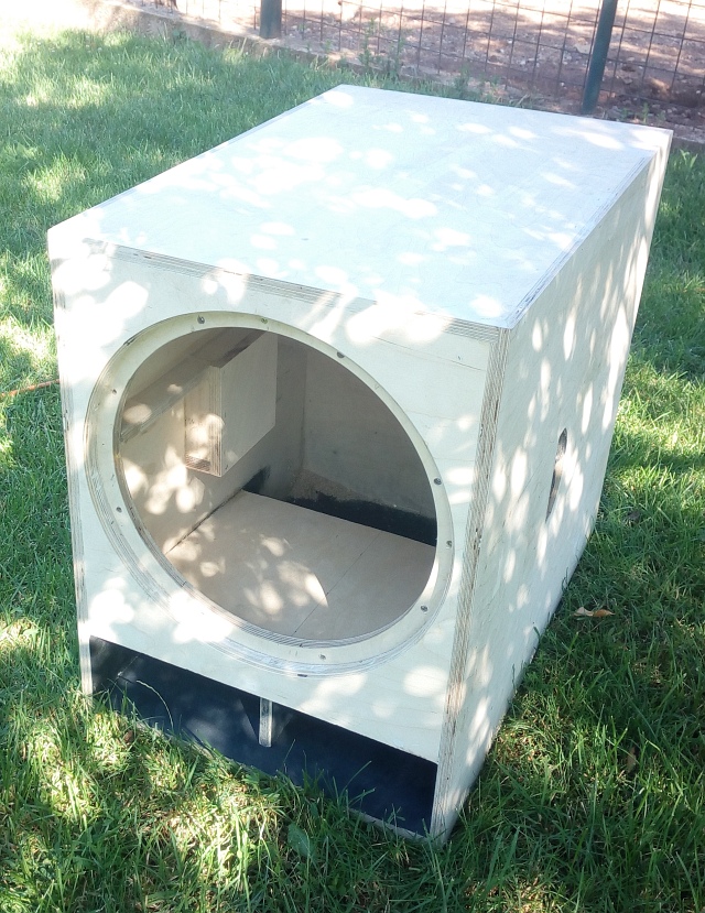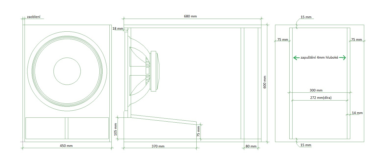 Vyrobeno dobře z 15mm březové ho multiplexu. Malá madýlka, vzádu komora na zesilovač (šla by odříznout).