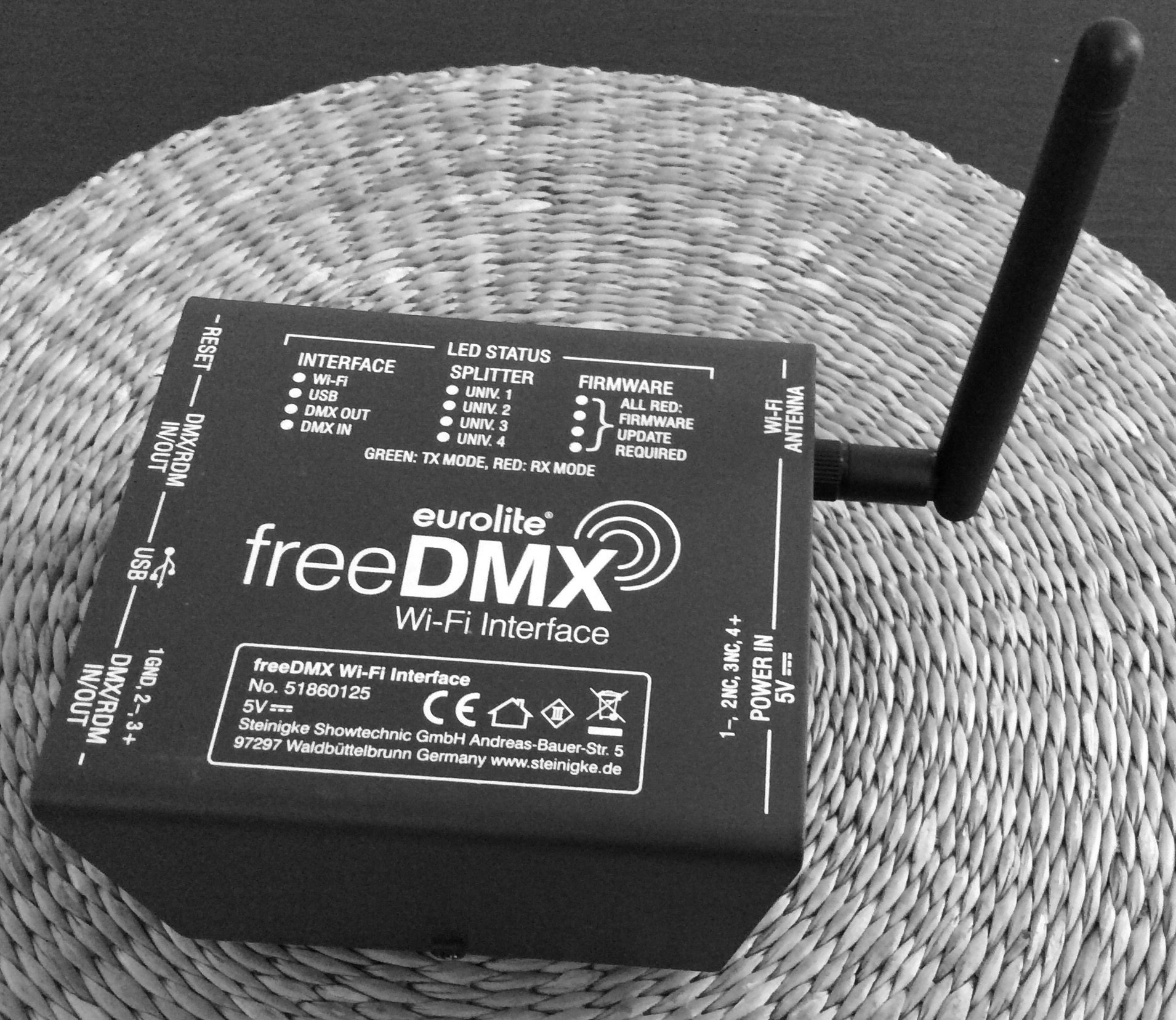 Prodám Free DMX wifi interface pro bezdrátové ovládání led světel Eurolite i jiných např Cameo. Vstup výstup DMX, usb port. Možnost ovládáni přes tablet.