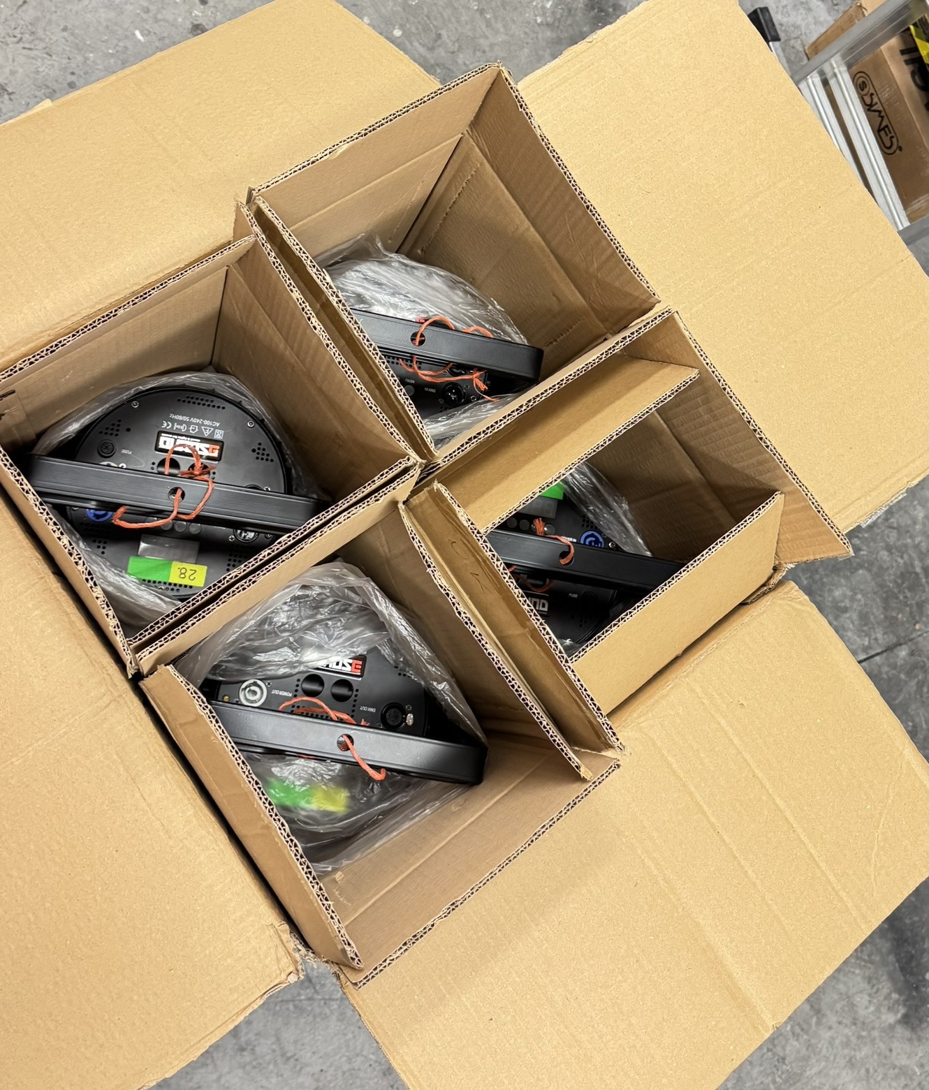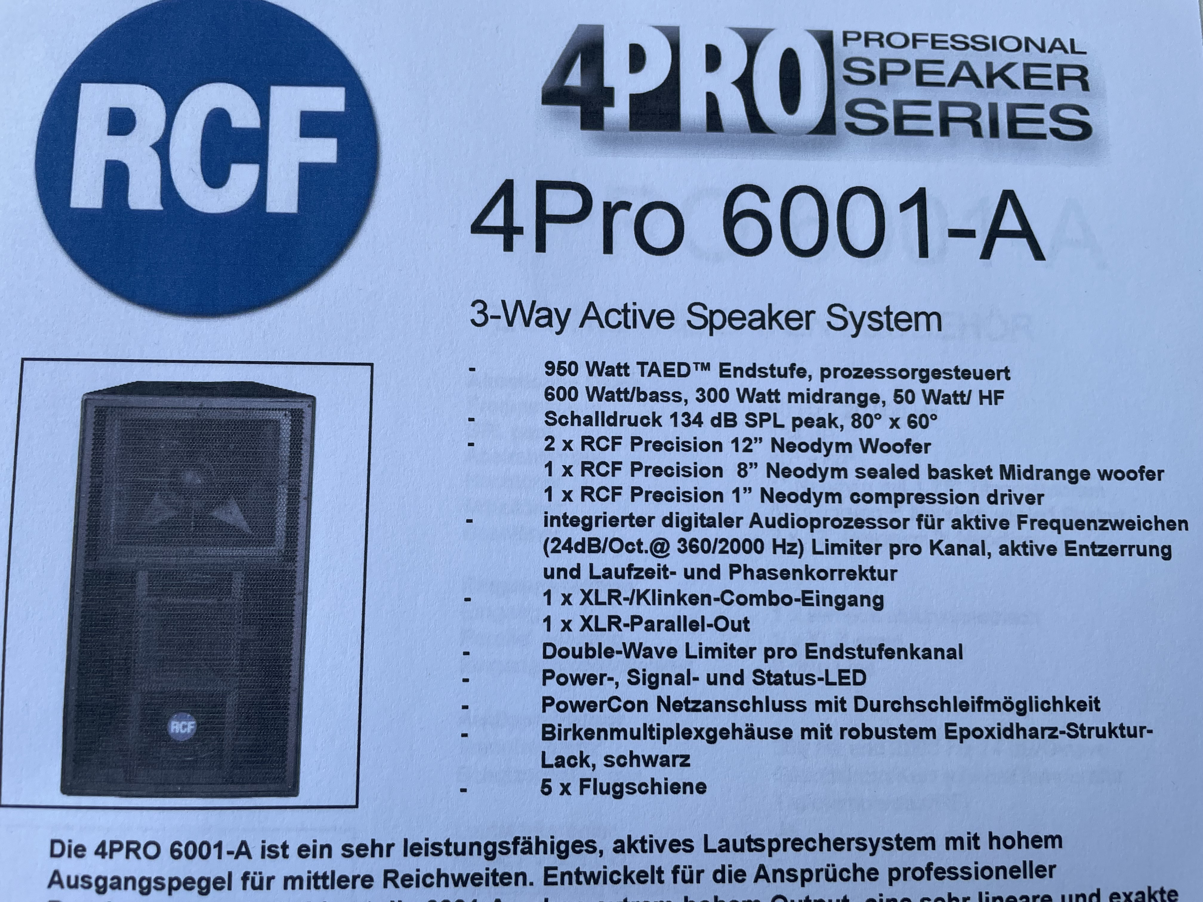 4 Reprobedny, kopie RCF 4Pro 6001 A, rozdělené na basy a vrchní pásmo kvůli váze