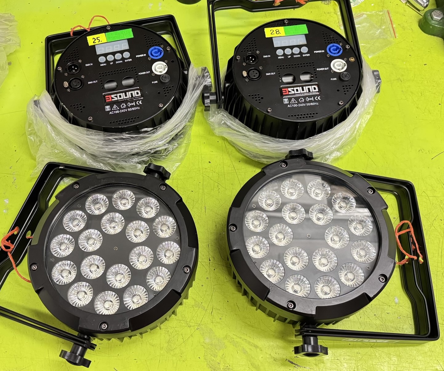Predám 50 kusov nepoužívaných LED PAR Exalite 18x 15 W RGBWA LED multichip, Vysoko účinná optika, čočky s priemerom 30 mm, numerický LCD display, režimy Master, Slave, mikrofón, DMX 5ch/9ch, 85mm x 285mm x 125 mm, 4,40 kg